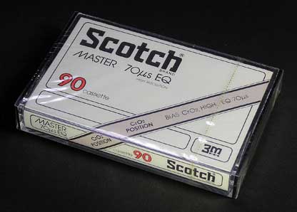 スコッチブランド初のクロムタイプのテープである。 製品名に付いている「70μs」(マイクロセコンド)はクロムポジションの録音・再生イコライザー(EQ)の時定数を表している。 磁性体に「ドープド・アイアンオキサイド(DIX)」を採用。「クロム磁性体をしのぐ高域の伸び、中低域の張り。エネルギッシュ。まさに、激写の感覚。」(当時の広告から) パッケージのデザインは、Scotchブランドの新世代共通のデザインで「Master 120μs」とほぼ同じである。本体も「精密クリスタルハーフ」となっている。 「MASTER 120μs EQ」と同様、製品名では名前を呼びにくいと思ったようで、当時の広告では、製品名の下に「マスター70マイクロ」と表示されていた。 |
