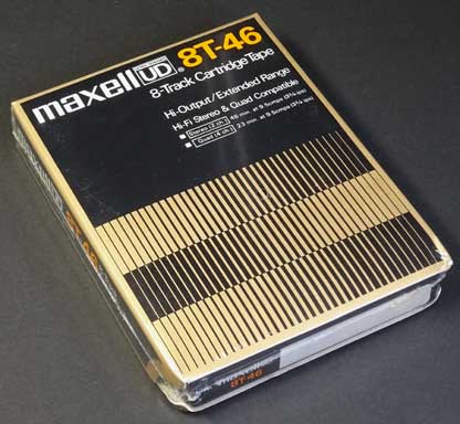 maxellの録音用8トラックカートリッジテープである。 輸出用製品で説明書き等が全て英語となっている。 46分用なので11分30秒×4プログラムの録音が可能ということになるが、実際はレコード1枚を丸ごと連続録音してカーステレオなどで聴くことを意図した製品だろう。 パッケージデザインは、当時のマクセル製品共通のものとなっているが、ベース色にゴールドを使い高級感を出している。 |
