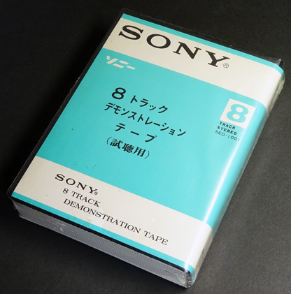 SONYの8トラックカートリッジのデモテープである。 当時の8トラックプレーヤーの付属品か販売促進用に製作されたもののようである。 同社のデモテープは「CBS/SONY」のものが多いが、本製品は「TBSサービス」が製作したものである。 収録曲は「オー・ソレ・ミオ」「トロイカ」「ラ・クカラーチャ」など、いかにも当時のデモテープといった選曲で、1プログラムに2曲ずつ、計8曲が収められている。 商品名にカタカナの「ソニー」が使われているのが珍しく、古き時代を思わせる雰囲気となっている。 |