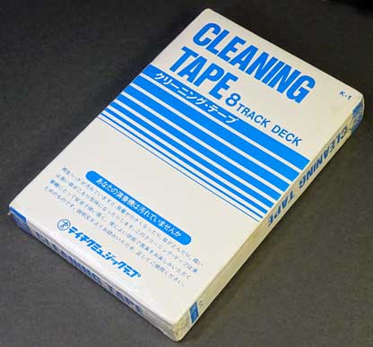 「テイチク」レーベルのレコードやミュージックテープの製造販売会社「株式会社 テイチク」(現:株式会社 テイチクエンタテインメント)が自社ブランドで販売した8トラックデッキ用クリーニングテープである。 テープは不織布製で、そのままでも使えるが、汚れがひどい場合は付属のボトルに入ったクリーニング液を不織布製のテープに含ませて使用する「乾式」「湿式」両用タイプである。 自社製造ではなく、製造元は「日立マクセル株式会社」と明記されており、「クリーニング液がなくなった場合は日立マクセル(株)より発売のサウンドクリーニング液 CL-002をお買い求めください。」との説明もある。 また、「クリーニング・テープはメビウスの環を応用し両面でクリーニングできる構造になっています。」とあり、テープの表裏を有効利用する仕組みになっているようである。 |