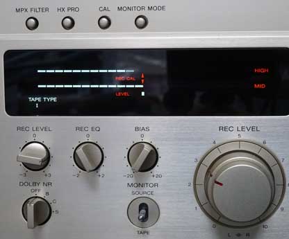 写真のとおり、HIGHレベルが出し切れていない。 これでも、BIASはマイナス側に目一杯、REC EQはプラス側に目一杯調整つまみを回した結果である(笑)。 続いて、NakamichiのDRAGONでの結果である。 |
