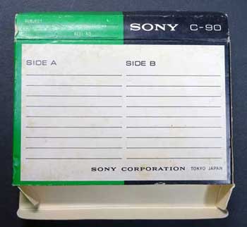 ほとんどの紙箱はこのタイプで、カセットに限らず石鹸など小物の紙箱で当時多く採用されていたタイプである。 上の写真のカセットは1970年頃のSONYの製品だが、同じSONYでもその少し前には下の写真のような紙箱を使っていた。 |