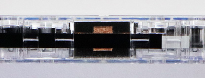 リーダーテープは透明で、クリーニングの機能はなさそう。 磁性体の部分はハイポジらしい黒色のテープである。テープが黒いとそれだけで何だかいい音がしそうな気がする(笑)。 表面がピカピカしているので鏡面仕上げがされているようである。 |