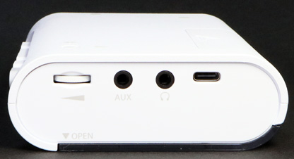 本体は真っ白で、外装は全てプラスチック製。全体に丸みを帯びている。本体の厚さが3センチくらいあるので、持ち歩くにはちょっとかさばりそう。 |
