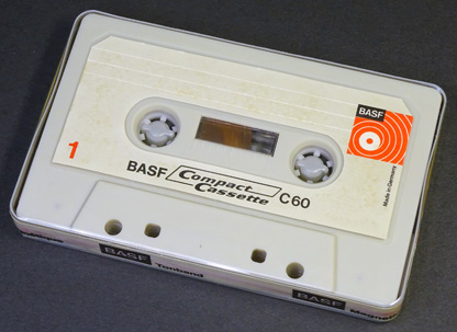 ドイツの化学メーカーであるBASFの比較的初期のカセットである。 本製品発売当時、同社のカセットはテープの性能によるグレードはなく、フィリップス型のプラケース入り「Sタイプ」やブック型プラケース入り「Kタイプ」など、包装形態による価格差を設けていた。 本製品「Rタイプ」は最も安価なエコノミータイプ製品として位置づけられていたが、パッケージは他社の廉価版のような紙製ではなく、薄いプラスチックをプレス成形して作ったようなケースが使われている。 このパッケージは、下側のカセットが入る容器の部分とその上に被せる透明なフタの部分に分かれており、販売時は容器とフタをBASFのロゴ入りテープでシールしてあった。 ケース自体にはBASFの刻印はおろか印刷などの装飾的なものは全く無く、内部にもインデックスカードや取扱説明書等は一切封入されていない。 しかし、ケースのフタが透明なため、中のカセットがケースのデザインのように見え、また、カセット本体ラベルのデザインがシンプルなこともあって、ラベル記載のBASFのロゴや「C60」という情報もわかりやすく伝わる。 大変簡素だが、いかにも当時の西ドイツ的合理性を持ったエコノミータイプ製品と言える。 なお、本製品は1971年頃に価格の引き下げが行われている。 |
