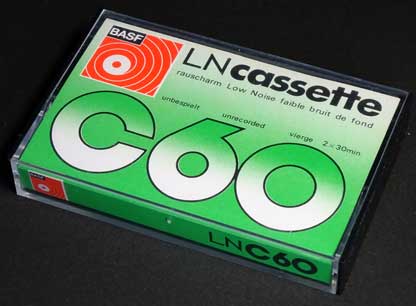 「BASF」の地元であるヨーロッパ向けのLNタイプのカセットである。 パッケージや本体ラベルのデザインに飾り気はあまりなく、同社独自の「SMメカニズム」も非搭載という、いかにもエコノミータイプのカセットである。 しかし、カセット本体にはネジ止めのブラックスモークの半透明ハーフが使われており、さすがに当時の西ドイツ製らしい、実用的でしっかりとしたつくりになっている。 |