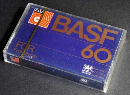 当時の西ドイツのメーカー「BASF」のフェリクロムテープである。 同タイプの従来品である「ferrochrom」のマイナーチェンジ版で、それまで略称として使われていた「FCR」が製品名としてパッケージに表示されている。 パッケージのデザインや製品カラーは「ferrochrom」から大きな変更は無く、ほぼ同様のものとなっているが、裏面の説明が日本語表記となり、日本国内向けの専用パッケージとなった。 カセット本体は、従来品の特徴であった広窓デザインが踏襲され、さらに、インデックスラベルには利用者が貼る「セルフ形式」が採用されたことで、より先進的なデザインとなった。 パッケージは通常のプラケースである「Pケース」入りのものと、独自の「c-box」入りのものがあり、「c-box」入りは通常ケースより100円高い設定となっていた。 価格については、SONYの初代「Duad」より高かった従来品より引き下げられ、Pケース入りは「Duad」とほぼ同様となった。 (c-box入りはbio様から御寄贈頂きました。) |