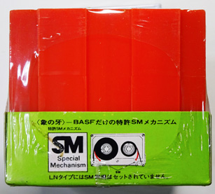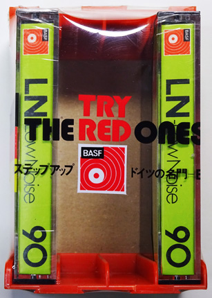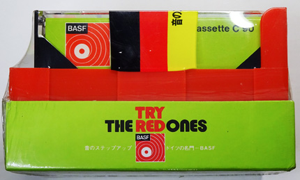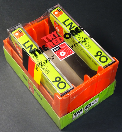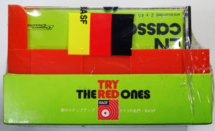 (カセット2本に赤いカセットラックがもれなく付属するキャンペーン商品。1976年に行われたプレゼントセール時のものか。)
