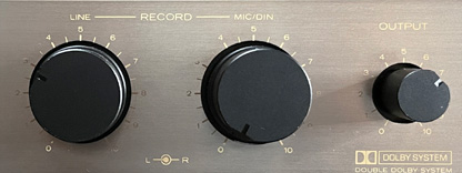 本製品はラインとマイクの2つの入力ボリュームがあるので、それぞれのレベル調整を独立して行うことができる。もちろん、マイクミキシングも可能である。 ボリュームのノブは大きく操作性が良い。 当時はまだ使われていた「DINケーブル」でアンプなどと接続している場合は、マイク入力のボリュームで調整を行う。 |