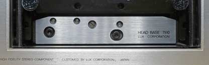 また、そのヘッドブロックのダイキャストベースもごつい。 しかも、型番まで付いている! 敢えてヘッドベースを見せるデザインなのである。 このごついヘッドベースはLUXMANカセットデッキの特徴で、特に最上位機種の5K50は、メタルテープ対応用にベースごとヘッドブロックを交換するようになっていた。 |