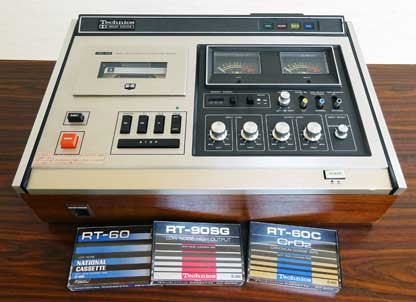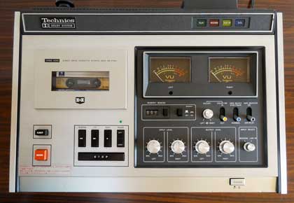 再生専用のドルビー回路を組み込むためには全体設計を見直さなくてはならず、かなりのコスト高になってしまうため、再生専用アンプのドルビーデコード機能は省略し、アフターモニターに特化した3ヘッド機として本製品を企画したのではないか・・と想像するのである。 そのため、ドルビーONでの録音中のアフターモニターは、ドルビー(Bタイプ)でエンコードされたキンキンした音をモニターすることになる(笑)。 3ヘッドのトップバッターとしてはやむを得なかったのだろうが、本製品の後に各社から発売された3ヘッドのカセットデッキは、いずれも上記メリットの(1)、(2)両方の実現を目指したものとなっているので、それらと比較してしまうと若干残念ではある。 本製品の最大の特徴である3ヘッドについての話が長くなってしまったが、その他の特徴についても述べていこう。 【ダイレクトドライブ&2モーター方式】 キャプスタンのダイレクト駆動は、初のDD機である「RS-275U」以来、Technicsデッキのお家芸とも言えるが、本製品でも採用されている。 また、早送りや巻戻し時のリール高速駆動時には専用のDCモーターを使う2モーター方式となっている。 【ホットプレスフェライトヘッド】 この時代のTechinicsのデッキは、摩耗に強い「HPF(ホットプレスフェライト)」ヘッドを採用していることが謳い文句であった。 当然ながら、本製品の録再兼用ヘッドは「HPF」なのだが、実は、細い再生専用ヘッドも「HPF」でつくられたナローギャップのヘッドが使われている。 【ソフトタッチボタンによるオペレーション】 これもこの時代のTechinicsの高級タイプのデッキ共通で、テープの走行は軽いストロークのソフトタッチボタンにより操作する方式になっている。 当時のほとんどのカセットデッキは、メカニカルなピアノキー式のボタンで操作する方式であり、これとは一線を画す高級な仕様となっている。 【レベル調整機能付きドルビーNR】 ドルビーNR(Bタイプ)は、本製品が発売された頃の高級タイプのカセットデッキにおいて採用が進んでおり、本製品でも採用されている。 さらに、ドルビー録音されたテープを正しく再生できるように、本製品にはドルビーレベル調整機能が付いている。 【上面操作の水平型デッキ】 これについては、特徴というより1970年代前半のカセットデッキの標準形というべきであるが、本製品もオール上面操作のいわゆる「水平型」のデッキである。 ちなみに、正面操作のいわゆる「コンポタイプ」のデッキが登場するのは70年代の中頃である。 |