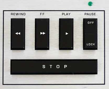 操作系の各ボタンは「RECORD」ボタンと同様、軽く押すだけで動作する。 メカニカル式の操作ボタンの場合はボタンのストロークでメカを動かすため、それなりにボタンを押し込む力が必要だが、本製品ではメカを実際に動かしているのは内部のソレノイドなので、操作ボタンは単なるスイッチなのである。 各操作ボタンは、固すぎず、柔らかすぎず、また、押し始めてからONになるまでには適度なストロークがあり、スイッチが入った瞬間に俊敏・確実に動作してくれるので、いかにも「機械を操作している」という楽しさと爽快感が得られる。 |
