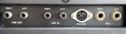 (左から、ライン出力、ライン入力、DIN入出力、マイク入力)