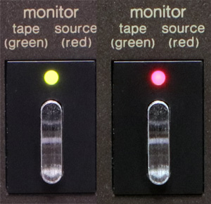(LEDが緑色の場合はテープモニター状態で(左)、