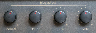 このデッキではバイアスとテープ感度のキャリブレーションが可能である。 手順としては、まず、入力切換スイッチを「400Hz」の位置にする。 |