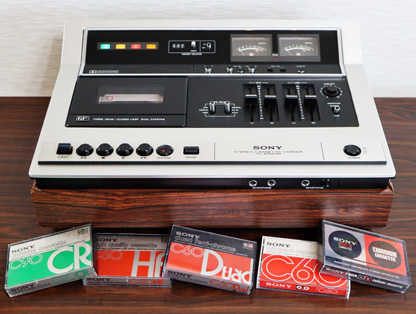 良い! いや素晴らしい! 「F&Fの3ヘッド構成」+「デュアルキャプスタン」の威力を見せつけるような良音である。 全体的には、ハッキリくっきり明るいソニーサウンドだと言える。 それでも、ノーマルテープはしっとり目の音、デュアドはメリハリのある音、ハイポジではソニーサウンド炸裂のパワフルな音、という風にテープの種類によるキャラクターの違いも演じ分けてくれる。 じっくり聴いていると、デュアドの音が一番バランスが良いように感じてくる。これは、高いテープを買わせるため、そう聴こえるようにSONYの罠が仕組まれているせいかもしれない(笑)。 ダイレクトドライブではない1モーターのデッキだが、音に揺るぎはなく、どっしりと安定している。 日本にカセットテープが登場してまだ10年も経っていなかった時期に、既にこれほどの音を出すカセットデッキが存在していたとは実に驚くべきことである。 そして、さらに驚くべきことは、それから約半世紀経った今でもこれだけの音を聴かせてくれるということだろう。これには、ほとんど摩耗していないF&Fヘッドの効果も大きいのではないかと思う。 |