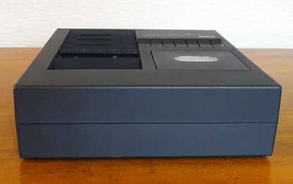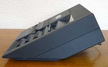 当時、ベリーニ氏はオリベッティのタイプライターなどのデザインを手がけていたらしいので、デッキもタイプライターのような形にしたら使いやすいのでは、と考えたのかもしれない。 全体的には斜めに傾いているものの、取り付けられているスイッチ類はタイプライターのキーボードのように階段状になっている。 |