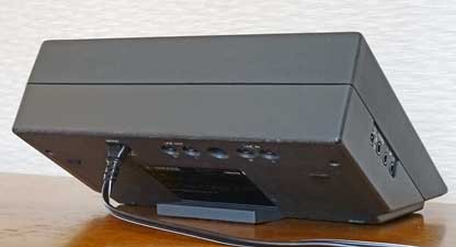 そもそも、なぜこんな使いにくい所に端子が付いているのか?とは思うが、常用(スラント)の状態でケーブル類が邪魔にならないようにするためには、この位置しかなかったのだろう。 なお、マイクやヘッドホン、ACアダプターなど、屋外での使用も想定されるジャック類は本体横に付いているので、水平状態でも問題なく使える。 |