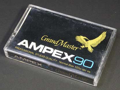 米AMPEX(アンペックス)社のスーパーLHタイプのカセットテープである。 当時の同社の最高級カセットで、「365」という型番のテープが使用されていた。 パッケージには鷲の姿が描かれ、いかにも「MADE IN USA」という雰囲気である。 テープの性能は良かったのかもしれないが、本体のパッケージングの精度が追いついておらず、高級感を出そうとしたデザインがアダとなって、返って全体が安っぽい感じになってしまっているのが残念である。 後に、ノーマルポジション用の「Grand MasterT」、ハイポジション用の「Grand MasterU」に製品が分化する。 |