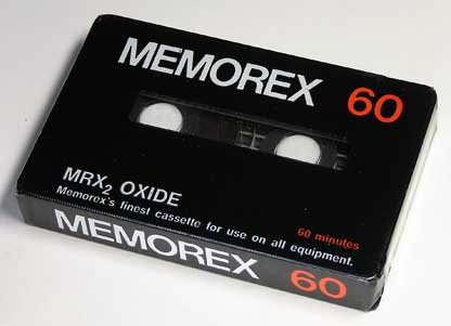 米メモレックス社のLHタイプのカセットで、「MRX」の後継機種である。 メモレックス製品の特徴である、プリントされた外装フィルム、本体の大型ウィンドウ、湯舟型5面磁気シールド、独特な形のプラスチックケースなどについては本製品にも採用されている。 また、カセット本体のB面左下部分には数字が模様のように型押しされている。これは、よく見るとパテント番号で、何ともアメリカ製品らしいところである。 |