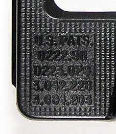 左下部分にパテント番号が型押しされている。