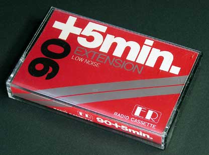 「スワイヤマグネティックス・ジャパン リミテッド」という会社が販売していたLNタイプのカセットである。 製造元である「SWIRE MAGNETICS LTD.」は香港にある会社だったようである。 本製品は、パッケージに「+5min.」と大書きされているとおり、録音可能時間が5分長い(C-90タイプで往復95分)ことが特徴となっている。 通常のカセットでも、テレコの速度偏差に対応するため、片面当たり1分程度は余裕を持たせたテープの長さにしていることが多いが、本製品は片面当たり2分30秒(テープの長さとしては約7.1m)と、かなり長めになっている。 元値の標準価格が国内メーカーに較べて安く設定されていた(実売価格はさらに安かったと思われる)ことと合わせると、かなりのお買い得感があったと思われる。 本製品は、同社のカセットシリーズで最もベーシックなグレードの製品で、パッケージや本体ラベルに「RADIO CASSETTE」と記載されているとおり、ハイファイ録音用というよりラジカセ向けの製品のようである。 ラジオ放送の1時間番組を片面に収めようとする際には、この2分30秒がかなり有効だったかも知れない。 |