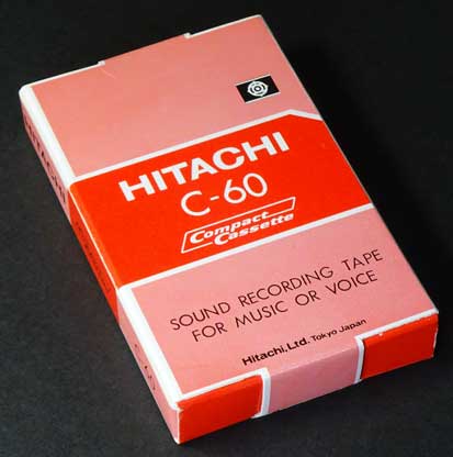 日立の初期の北米向け輸出用のカセットである。 紙箱入りで、ボイスメールとして利用されることを想定して、パッケージの裏面は宛先の記入や切手を貼ることができるようになっている。 また、箱の出し入れ口には通常のタブの反対側にも小さなタブが付いており、両方のタブを閉めることで郵送中に開け口が自然に開くことを防ぐ工夫がされている。 カセット本体は、当時の日立ブランドのカセットと同様のデザインとなっている。 |