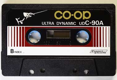 | 録音内容を記載する欄がラベルの下側、製品名等が上側にレイアウトされている。連名版のラベルとは上下が逆になっている。 |