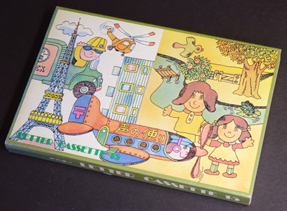 「声の便り」としてカセットテープを手軽に郵送できるようにつくられた製品である。 パッケージの裏面に宛先などを記入し切手を貼付すればポスト投函で郵送ができる。 カセット本体には「NOT FOR SALE」と表示されていることから、一般に市販されていたものではなく、販売促進などの目的で頒布等がされた製品のようである。 パッケージ裏面下に「CASSETTE KIKAKU CO.,LTD.」と会社名が記載されているが、同じ面の左上部分には、当時の「三洋電機」のカセットテレコの販売に使われていたものと同じ「REC」というロゴが記載されていることから、「SANYO」のカセットテレコ用の販促品だったのではないかと思われる。 パッケージ表面には久里洋二(風?)のイラストが描かれている。 録音時間が往復で15分というのは珍しい設定だが、これは単に「C-30」を1/2にしただけなのかもしれない。 |