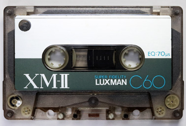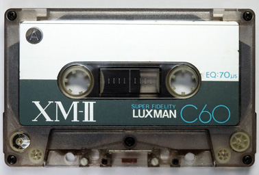 左上のA、B面の表示はカセットハーフそのものに成形されており、その部分だけメタリックのインデックスラベルが丸く切り取られている。 |