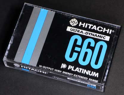 プラチナ萬年筆株式会社が販売したLHタイプのカセットである。 本製品も日立との共同開発だったようで、その名前のとおり当時の日立版「UD」のOEM版と思われる。 パッケージや本体ラベルには販売元の「PLATINUM」と製品供給元の「HITACHI」のロゴが併記されている。 一般的には、供給元メーカーは小さく表示されているか、あるいは、全く表示しないこともあるが、本製品の場合は、販売元のプラチナ萬年筆のロゴよりも大きいくらいで、しかも、目立つ位置に表示されており、どちらの製品か分からないほどである。 パッケージは高級感を持たせたブラック基調のデザインで、グレー(シルバー?)と録音時間のカラーによる3本のバーが日立製品のパッケージの雰囲気に似ている。 本体はブラックのハーフで、ラベルはパッケージと同様のカラーバーが使われている。 |