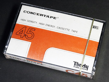 「Tandy Radio Shack」(タンディー・ラジオ・シャック)というアメリカの電気器具販売チェーンのオリジナルブランドのカセットで、日本国内店舗用の製品である。 1970年代に全米最大の店舗数を誇ったチェーンで、カナダやヨーロッパなどにも店舗を広げていた。 扱う製品は、ほとんどが自社開発のオリジナル製品(いわゆるプライベートブランド品)で、それらを数の力で廉価に直接販売するというビジネスモデルであった。 1975年頃に日本にも進出し、東京都内に数店舗を展開していた。 本製品はその頃に店頭で販売されていたもののようで、「CONCERTAPE」というのは同社の録音テープのブランドである。 パッケージの表面や側面には日本語がないが、裏面にはしっかりと日本語による標記がされている。 日本製ではなく、当時としては珍しい韓国製だったようである。 (米国内店舗で販売されていたテープは海外製品展示館で展示しています。) |