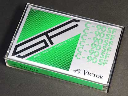 ビクターが自社ブランドで販売したLHタイプのカセットである。 「SF」は「SUPER FIDELITY」の頭文字を取ったネーミングのようである。 本製品以前に販売していた「SH」というカセットをリニューアルしたものにあたり、「SH」より50円値上げされたが、紙ケースからプラケースに変更され、カセット本体もブラックハーフとなるなど高級感が増している。 「SH」と同様にC-90のみの商品設定であった。 本製品も懐かしい旧ロゴの「VICTOR」が使われている。 |