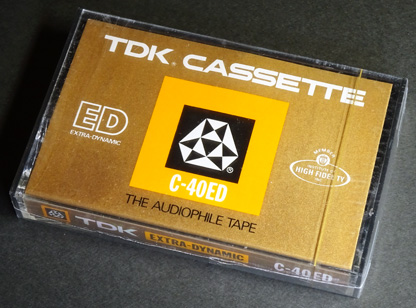 TDK初のスーパーLHタイプのカセットである。 「SD」の上位機種として発売されたテープで、磁性体に「マグネタイト」(Fe3O4)を使用した初の製品とされる。 日本版「ED」の初代製品は「ダイナミックシリーズ」の一員として、ストライプのパッケージでの登場であったが、北米向けの初代である本製品は旧タイプのパッケージデザインとなっている。 カセット本体も日本版のようなブラックのハーフではなく、「SD」と同様のグレーのハーフが使われている。 また、試供品なのか正規販売品なのかは不明であるが、「C-40」という珍しい時間設定の製品が存在する。 |