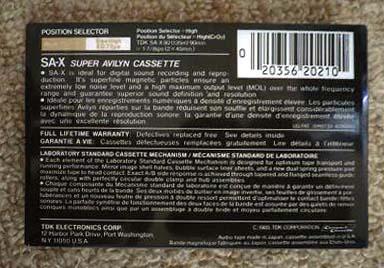 TDK-SAXの米国版(テープは日本製、組み立ては米国)です。ハーフが初代のARの物のようです。(色違いですけど。) かなり昔に入手したのですがもったいなくって未開封です。 |